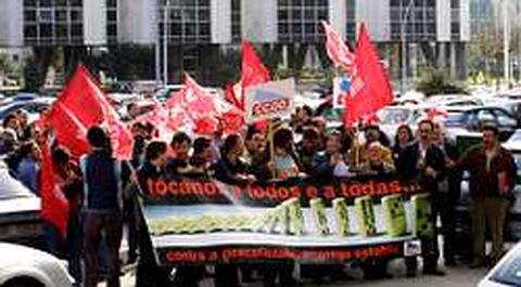 CC.?OO. organizó ayer una manifestaron en la plaza Luis Seoane para protestar por la creciente precariedad laboral, que en A Coruña alcanza, según este sindicato, al 26 % de los hombres y al 32,8% de las mujeres.
