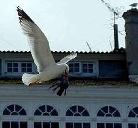 15 may 2007 . Actualizado a las 07:00 h.La concesionaria del servicio de control de aves, Locus Avis, inició el lunes sus visitas a los tejados. Los operarios se enfrentan a la gaviota, un pájaro de mucho cuidado: carroñero y muy listo. ¿Cuáles son los barrios más afectados? Según Locus Avis, Os Castros, Ciudad Vieja y Monte Alto. Comparten dos factores de alto riesgo: son cercanos al puerto y tienen casas viejas. En A Coruña están censadas 750 parejas residentes, es decir, que crían en la ciudad. Además, hay cerca decenas de miles (en las Sisargas, unas 10.000 residentes). Muchas de éstas nos visitan. ¿Qué molestias producen? Entre el 15 de julio y el 15 de agosto, los ruidos son insoportables, especialmente en los pisos altos. Cuando los pollos empiezan a volar a mediados de julio, los adultos intentan expulsar de los tejados a los que no son de su familia: hay muertos, casi siempre infantiles. En esa época, a veces también están a la greña los adultos. A finales de agosto, los pollos que sobreviven se quedan solos en el tejado que se han ganado y las molestias remiten. Además de los ruidos, las gaviotas llenan aceras, tejados, coches y terrazas de excrementos. Y cuando empiezan las lluvias, en septiembre, sus nidos atascan los canalones. ¿Qué comen? De todo: cierre bien los contenedores de la calle durante una temporada. Los operarios de Locus Avis se encontraron lleno de nueces el tejado de Nuevos Ministerios, uno de los puntos que visitaron el primer día de campaña. En otros tejados han visto numerosos huesos de costilleta. Roban pescado y marisco en el puerto, lo que sea en el exterior de los mercados, restos de comida en los patios de recreo y las playas, gusanos, insectos, palomas... ¿Cuánto viven? Una media de veinte años. A los cuatro se empiezan a reproducir. Sólo hacen una puesta, salvo cuando se les quitan los huevos: entonces realizan dos y, si se les vuelve a retirar el nido, algunas hasta tres. ¿Atacan? Son agresivas en los momentos de cría. «Sueltan excrementos, hacen vuelos rasantes intimidatorios, gritan y golpean con sus patas, pero nunca me han dado con el pico», dice Miguel Álvarez, biólogo de Locus Avis. ¿Cómo se puede luchar contra ellas? Las cintas antigaviotas (que emiten destellos al contacto con el sol), la colocación de una red de cedés unidos por nilón para lograr ese mismo efecto o los aparatos que emiten sonidos que presuntamente ahuyentan a estas aves no son efectivos, según Álvarez. Para reducir las molestias, este experto recomienda los pinchos antigaviotas, que evitan que se posen: el metro cuesta entre 10 y 12 euros. Además, claro, de recurrir al servicio gratuito de retirada de nidos y huevos, para lo que ya se puede llamar al 010.