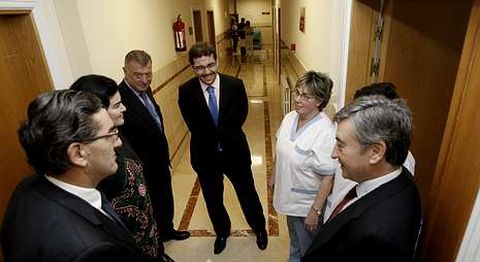 Parte de la familia Abarca se encuentra estos días en A Coruña y ayer por la mañana permanecieron en el Modelo acompañados por Ramón y Jorge Cobián, gerente y director médico del centro coruñés. Juan, Alejandro y Elena, director general, director de recursos corporativos y secretaria general del grupo HM, respectivamente, se detuvieron a charlar con el personal. foto marcos míguez