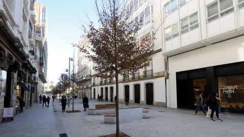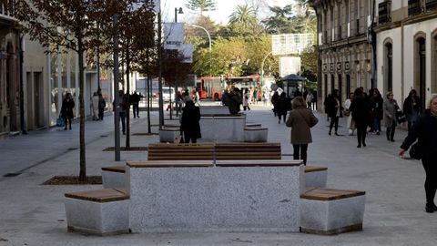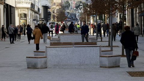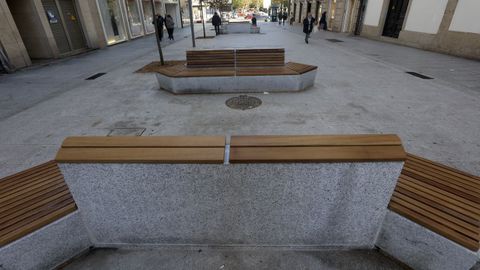 Pese a todo, el nuevo mobiliario urbano y la plantación de 20 ejemplares de carpe (Carpinus betulus) en la vía peatonal han calado entre los transeúntes. «Eu vexo isto fantástico. Agora hai moitos bancos e podes sentarte a conversar tranquilamente. Anima para vir traballar. Antes había moitos coches e era un pouco caótico todo e había moito ruído», señalaba Nerea Sande, trabajadora en un negocio de la calle. «Esta mañana [por este lunes], por ejemplo, había mucha gente. Se nota más ambiente al ser peatonal», opinaba Marga, una viandante.