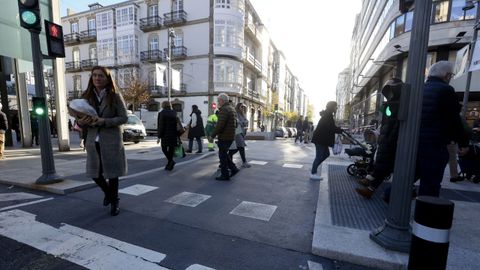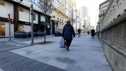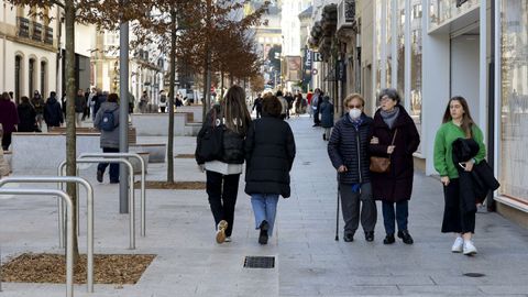La peatonalización de la calle Compostela, en A Coruña: «Vexo isto fantástico, agora hai bancos e podes sentarte a conversar»