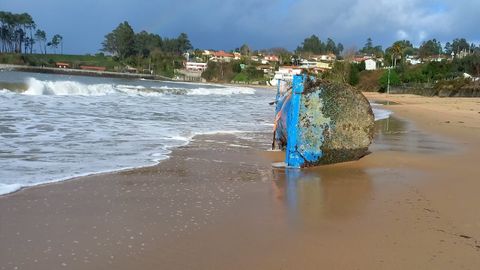 No solo hubo incidencias en el interior, en la playa de Perbes, el mar trasladó a la arena parte de una batea.