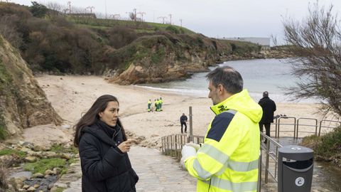 08 ene 2024 . Actualizado a las 17:23 h.La concejala de Medio Ambiente, Noemí Díaz, se acercó este lunes a la playa de As Lapas para supervisar los trabajos municipales de limpieza de la carga perdida por un mercante.