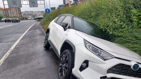 Un turismo queda encajado en la cuneta de uno de los accesos de Alfonso Molina, en A Coruña