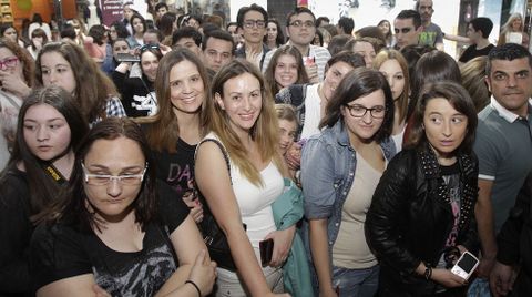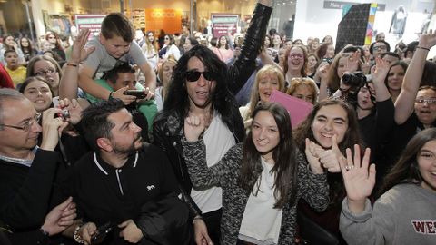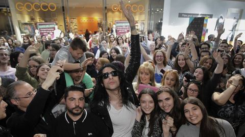 1Hubo gente que estuvo más de dos horas en la cola para conocerlo. «Se espera el tiempo que haga falta para verlo, se lo merece», dice una mujer que espera paciente. Estampó su firma en camisetas, discos, frascos de colonia e incluso en latas de cerveza. Se hizo fotos, selfies y hasta «un vídeo para mi sobrina», solicita uno de los centenares de ciudadanos que ayer por la tarde se acercaron al centro comercial The Style Outlets para ver, tocar y fotografiarse con Mario Vaquerizo. Hasta hubo un niño que acudió vestido como el mediático líder de las Nancys Rubias a modo de replicante. El artista adora acercarse por aquí. Y a los coruñeses le encanta verlo. Alguno le recordaba su actuación hace dos años en los jardines de Méndez Núñez. «Me encanta Galicia y todos los años venimos con el grupo a Luar, que es un programa en el que siempre nos tratan de maravilla», comenta Mario, que arrasó en la fiesta del cuarto cumpleaños de la superficie comercial de Culleredo. Una vez más demostró su poder de convocatoria arrollador y su condición de fulgurante estrella pop.