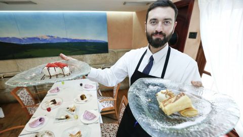 Las que estén con la operación bikini no lo pasarán bien. Verlos y no probarlos será decisión complicada. Solo podrán resistirse aquellos que estén dotados de una fuerte personalidad y, aun así, probablemente acaben con el mítico dicho: «Un día es un día. Hoy hago una excepción». Nos referimos a todos aquellos comensales que acudan al restaurante La Palloza para disfrutar de una comida o cena. A la hora del postre, la situación será complicada. Y es que este emblemático establecimiento, ubicado a cuatro kilómetros de la capital lucense, dispone de una gran variedad de postres; cada cual con su mejor sabor. Aquí la pinta no engaña. Entre las opciones a elegir se encuentran las cañas rellenas de crema pastelera y un toque de canela, brownie de chocolate, tarta de queso con fresa o helados artesanales... platos dulces muy sencillos, pero preparados con un total esmero para que además de resultar atractivos a la vista, dejen un sabor de boca excepcional. «Es el cierre y la coronación de toda comida. Es por ello que tiene que ser perfecto hasta dentro de su sencillez», opina Ramiro López, propietario del establecimiento.