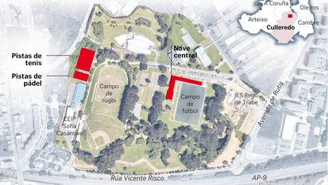 Otras áreas que están totalmente desaprovechadas en la actualidad y que son interesantes para Culleredo son las pistas de pádel y las de tenis ubicadas al pie del CEIP Sofía Casanova, en la parte alta del complejo. De hecho, esta fue una de las propuestas elevadas por los alumnos de sexto de este centro, en el pasado pleno infantil de diciembre.