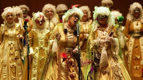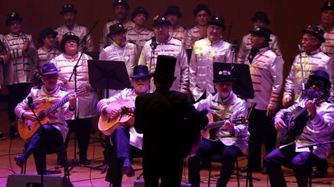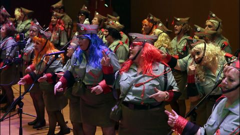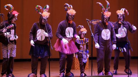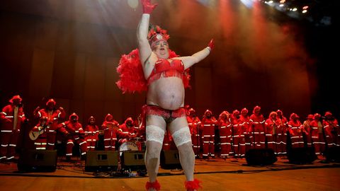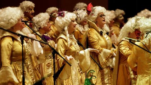 La cita, el Palacio de la Ópera, que registró una buena entrada de público, que acudió a escuchar y ver desfilar por el escenario de este auditorio, reservado habitualmente para los grandes músicos y las grandes orquestas, a lo mejor del carnaval coruñés.