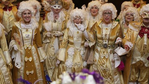 El grupo Pantaleón, con trajes de la época de Mozart, fue el ganador del concurso de comparsas