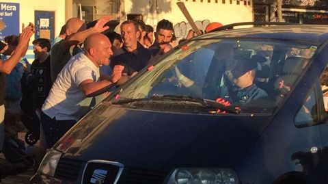 Amigos, familiares y clientes del Serán, el bar que regenta junto a su mujer, cortaron el paseo marítimo de la localidad oleirense para recibir a Juan José García, que estuvo ingresado en el Chuac casi dos meses y por cuya vida se llegó a temer