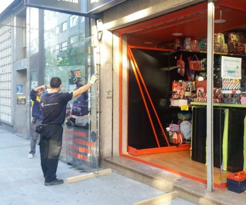 En la Carlín entraron sobre las 5.00 horas del pasado miércoles. Para ello los ladrones reventaron un escaparate con vidrio de seguridad, cogieron el cajón de la registradora, en donde estaba el cambio, «y al salir se llevaron una mochila y un cepillo eléctrico con el escudo del Real Madrid». Entre el valor de la cristalera y el botín logrado «podemos hablar de más de 1.000 euros», dijo el jefe del negocio, Daniel Vieiro.