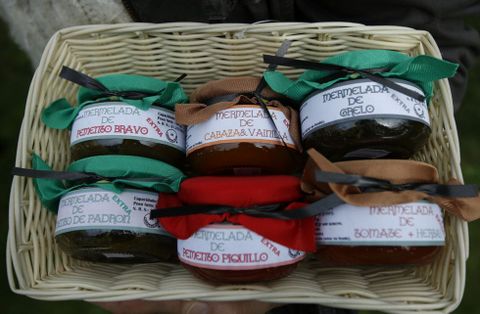 En este momento tiene 27 variedades de mermeladas, aunque la estrella sin duda es la de fresa. Y también la de mora. «Todas se venden ben, en realidade. Vai por épocas». De hecho, en la oferta destacan mezclas tan apetitosas como calabaza con vainilla o pimiento del piquillo, las últimas creaciones para la campaña de Navidad. Algunos de sus clientes ya son fieles a la mermelada de grelos, de pimiento de padrón, de pimiento bravo (morrón con una pizquita de guindilla), de tomate cherry o de naranja y café. Nuria aclara que los ingredientes son todos naturales, sostenibles y artesanales: «Sen xelatinas. É todo froita ou verdura, azucre e limón ou vinagre». Y esta filosofía la lleva incluso al envase, ya que los clientes que devuelven el tarro de cristal a la tienda reciben 0,15 céntimos de euro. «A xente colabora moito. Incluso algúns devolven a goma e a tela do capuchón», dice.