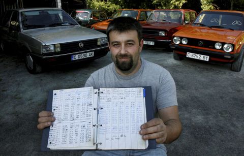 12 oct 2015 . Actualizado a las 19:57 h.Ahora que la marca Volkswagen está en entredicho por su fraude medioambiental, desde Oza-Cesuras ha trascendido una historia amable con un vehículo del gigante alemán. El coche en cuestión no tiene ni ordenador de a bordo, ni software, ni farrapos de gaitas. Este Passat tiene un cuarto de siglo, pero tira como el primer día. Ahora pertenece a Guillermo Redondo Mito, un coleccionista de vehículos con más de veinte en una nave de Mondoi. Cuando se hizo con el Passat se encontró con una carpeta azul en la guantera y en la que descubriría toda la vida económica del coche, todos los tramos recorridos, los ingresos de gasolina... «Os cambios de aceite, os tickets de aparcamento, os botes de champú para lavalo, as pezas sustituidas, todo, absolutamente todo», explica Mito, vecino de la parroquia bergondesa de Cortiñán. El informe recoge todos los movimientos desde la compra del vehículo hasta el año 2003, cuando Manuel Rodrigo Rivas, el anterior propietario y autor de este impresionante ejemplo de contabilidad, dejó de conducir. «Vese o cambio de pesetas a euros, os meses no que o coche estivo parado, todo o que lle mercou e engadiu... tratou e coidou o coche coma se dun fillo se tratase», explica Mito, buen conocedor de los coches por su condición de mecánico. Es la primera vez que ve un documento tan exhaustivo para controlar los gastos de un coche. Manuel Rodrigo Rivas falleció este año y su viuda ratifica su carácter minucioso.