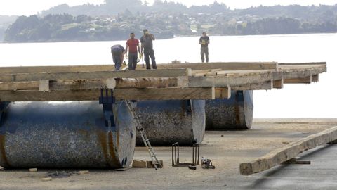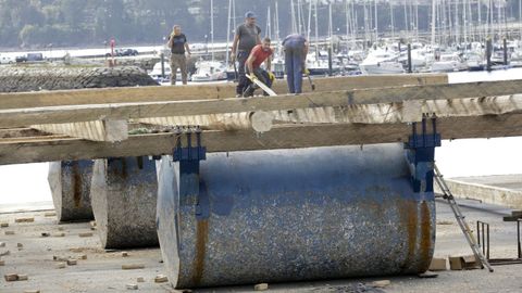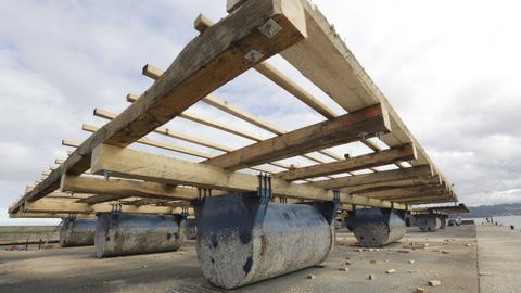 Una empresa de Meaño renovó cuatro de estas estructuras de la empresa Proínsa en el puerto, reutilizando los flotadores de hace 30 años
