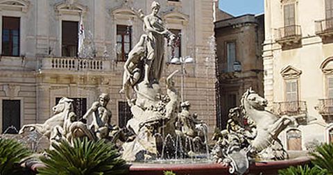 21 oct 2005 . Actualizado a las 07:00 h.A pesar de interés del parque arqueológico de la Neapolis, desde el S.XIX el auténtico atractivo de Siracusa se encuentra en la isla de Ortigia, la histórica y moderna polis griega, unida al resto de la localidad por un par de puentes. Ortigia fue 400 años a.c. la ciudad más rica del mundo griego, en la que vivieron Arquímedes y la diosa Artemisa. Una posible ruta a pie puede empezar en la Piazza Archimede, el corazón de la isla. Esta elegante plaza tiene en su centro la fuente de Artemisa y está rodeada de varios edificios señoriales de estilo gótico catalán, como el Palacio Lanza o el Palacio Platamone. La siguiente parada es la Piazza del Duomo, una plaza semi-elíptica impresionante por su belleza. Aquí predomina claramente el estilo barroco y en ella encontramos el palacio municipal, construido en el s. XVII por un arquitecto español. En el centro se ubica la Catedral, el mejor ejemplo de mezcla de estilos arquitectónicos de Siracusa. En el lado sur de la plaza, ya junto al mar, podemos encontrar la fuente de Aretusa, uno de los lugares sagrados de la ciudad y un punto de encuentro de muchos sicilianos al caer la tarde. Según la leyenda, el agua de la fuente procedía del río Alfeo. Alfeo amaba a la ninfa Aretusa y brotaba en Sicilia para unirse a su amada. Justo en el otro extremo de la isla, en la plaza Pancali, tenemos el Templo de Apolo, uno de los primeros edificios griegos de Siracusa, levantado en el s. VI a.c., pero del que sólo quedan algunos restos. Hoy, en plena rehabilitación esta zona monumental tiene una enorme vida nocturna y artística.