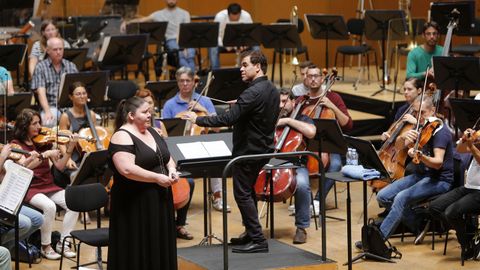 Se constituye así una relación cómplice entre tres partes -orquesta, soprano y director- en la que Khan actúa como vaso comunicante. Precisamente esa vertiente comunicativa es la que lo atrae de bajar al foso para comandar una ópera. «Yo empecé con ópera. He hecho conciertos sinfónicos y todavía los hago», describía ayer antes del último ensayo general para la cita de hoy. «Pero lo que me fascina es que en esa conexión entre orquesta y cantantes el punto de contacto soy yo. La ópera es más difícil, pero por eso mismo me atrae», explica el director.