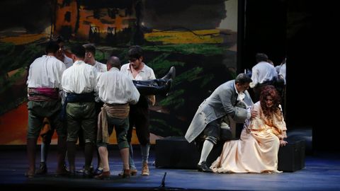 Amigos de la Ópera la presenta apelando a un cineasta genial que recientemente se ha acercado a Da Ponte y Casanova. El ritmo trepidante del libreto, que solo detienen las arias, tiene cariz cinematográfico y deriva de la energía diabólica del protagonista. Por lo cual, este no tiene arias. Obra de enormes exigencias llena de innovaciones. De la pluma de Mozart, la primera demanda es para la orquesta, magníficamente resuelta por la OSG, bajo la docta batuta de Miguel Ángel Gómez Martínez. Bien el Coro Gaos. El rol protagonista lo asumió Juan Jesús Rodríguez, muy valorado como barítono verdiano. Su voz amplia, de buen timbre, está bien para el papel —debutaba— y lo dejó patente en el Fin ch’an dal vino, pero necesita enriquecer las sutiles inflexiones de los recitativos. Buena la réplica de Simón Orfila como Leporello por voz y canto, mejor algo más de vis cómica. La ultrajada Donna Anna estaba a cargo de Gilda Fiume, cuya voz y maneras encajan en el personaje y resolvió bien la difícil aria Non mi dir. La americana Costa-Jackson dio carácter a la furia de Doña Elvira con voz un tanto gutural y acerada en casi todos los recitativos. Tierna, picara y bella estuvo Rocío Pérez, como Zerlina, cuya voz y estilo apuntan a mayores empeños. Para don Octavio, Corujo debe montar mejor el sonido. Emotividad no le falta. Gerardo Gullón estuvo convincente como Masetto, al igual que Andrii Gonioukov como Comendador, especialmente en la escena en que se lleva al burlador a los infiernos. Ahí concluyó, sin final moralizante.
