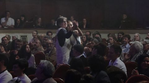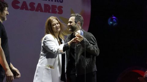 09 abr 2026 . Actualizado a las 12:03 h.«Lembremos, nomeemos, actuemos», ista foi a premisa principal en defensa da preservación do galego, que conta no teatro coa «chave decisiva para a revitalización da fala», na gran noite das artes escénicas de Galicia: a celebración da XXX edición dos premios María Casares. A gala tivo lugar onte no teatro Rosalía de Castro da Coruña e o espectáculo tivo moi presente ao recentemente finado Manuel Lourenzo, figura esencial do teatro galego e Premio Nacional de Literatura Dramática, cunha vida de compromiso como gran referente desta disciplina, que por suposto desenvolveu en galego. Precisamente a lingua galega marcou gran parte do Manifesto Galego polo Día Mundial do Teatro da man do activista e docente Carlos Callón e tamén o descurso da presidenta da Asociación de Actores e Actrices de Galicia (AAAG), Eva Fórneas. «É unha sorte ter unha idiosincrasia propia na que a lingua xoga un papel fundamental… por iso é tan importante facer que a súa calidade sexa cada vez maior», expresou. Reconversión, de Ibuprofeno Teatro, dirixida por Santiago Cortegoso, Carlos Álvarez-Ossorio e Natalia Feijoo, era a gran favorita e reafirmouse como triunfadora indiscutible con seis galardóns dos 11 aos que optaba. «A UE recomenda investir un 2 % en cultura e en España a porcentaxe é de 0,8%», criticou, á vez que mostrouse partidario das novas compañías teatrais, pero reivindicou as xa veteranas como a súa, sobre a que detallou que deu perdas no 2025 pero «postos de traballo a moita xente».