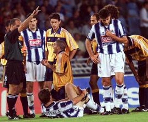 23 sep 2000 . Actualizado a las 07:00 h.Confirmado: el Deportivo tiene dependencia de Walter Pandiani, el Rifle. Mientras su colega Tristán pone la clase, la estética y los amagos ofensivos, el uruguayo se limita a cumplir su contrato: marca goles y, como hasta ahora, decisivos. Pero ayer violó una cláusula. La autoexpulsión no estaba contemplada entre sus deberes cuando firmó por el Deportivo, y el gesto de su fea patada a Gurrutxaga puede traer consecuencias espinosas en la apretada agenda del club que le paga. Pandiani recordó ayer al Djalminha de la temporada pasada contra el Zaragoza (jornada 36) cuando, después de marcar el empate, se ganó la segunda cartulina amarilla por despojarse de la camiseta. Todo en diez minutos Al uruguayo le bastaron diez minutos (del 50 al 60 de partido) para ser el hombre más idolatrado y vituperado por la afición deportivista. Su primer balón acabó en gol, el último lo empujó a la ducha. Será titular en Turín ante el Juventus, pero el próximo choque de Liga en Riazor ante el Barcelona lo verá en compañía del público. Y quizá, con su metedura de pata frustre otro sueño importante: el de saltar al Santiago Bernabéu en competición oficial en la quinta jornada de Liga. Nadie duda del carácter luchador de Pandiani, un joven jugador que toma el Dépor como puerta de entrada en el fútbol europeo. Su garra le ha supuesto acciones decisivas para los éxitos del Deportivo: dos goles en Liga, uno en Liga de Campeones, un magistral pase a Naybet en Atenas, una actuación sobresaliente en el Teresa Herrera... Pero también un veto de diez partidos en la Copa Mercosur por su agresión a jugadores del Flamengo hace nueve meses.