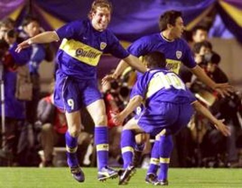 29 nov 2000 . Actualizado a las 06:00 h.Y sin el estilismo de Riquelme, pero en la boca de gol, Martín Palermo, el Loco. El máximo goleador de la década de los noventa de los xeneize. Temible juego aéreo y comportamiento imprevisible dentro y fuera de la cancha. Varias personalidades futbolísticas y psicológicas se esconden dentro del ariete. Capaz de variopintos logros. De fallar tres penaltis en el mismo partido con la albiceleste. De lucir un mechón teñido de rabioso rubio. De ser el primer argentino en conseguir dos dianas en la Intercontinental. De posar vestido de mujer a lo Dennis Rodman para una revista. Maradona lo recomendó para el Boca y se emparejó en ataque con Guillermo Schelotto. Con sus dos goles ante el Madrid, los Fondos de Inversión del club xeneize han subido en bolsa. En la otra orilla se mueve el centrocampista Pablo Aimar. Un veterano de 21 años en el River Plate. Juan Pablo iba a ser su nombre, pero, cosas del destino, el día antes de su nacimiento Argentina ganaba el Mundial 78 con César Luis Menotti en el banquillo. Conclusión, se cayó Juan en favor de César en homenaje al técnico de la albiceleste. Su compañero Saviola fue un bocado codiciado por el Barça. La prensa inventó un nuevo adjetivo para describir sus jugadas: maradonianas. Y es que Europa y Sudamérica buscan un nuevo diamante, es decir, un nuevo Diego, en la mina argentina.