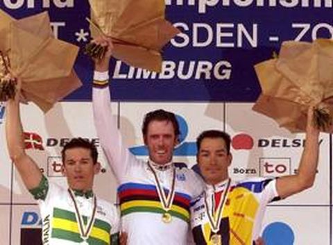 13 oct 2002 . Actualizado a las 07:00 h.Mario Cipollini le ha devuelto el arco iris a Italia. Y lo ha hecho con su autoridad habitual, tras imponerse al esprint en un circuito infame, con vallas de pata como protección que sólo se emplean en países tercermundistas. Robbie McEwen y Erik Zabel, plata y bronce, respectivamente, le acompañaron en un podio huérfano de españoles. Óscar Freire, víctima del infortunio se quedó sin ninguna posibilidad de optar a las medallas a dos kilómetros de la meta cuando la parte externa del eje de su rueda trasera de otro corredor le destrozó la rueda delantera. El récord de Merckx tendrá que esperar. Cipollini venció de una forma insultante, gracias a la sorprendente labor de un equipo, Italia, que por primera vez en muchos años trabajó como tal, controlando toda la prueba, con la colaboración de los australianos y de los aliados polacos, que también trabajaron para sudar un poco y sacarse un dinero. La carrera no resultó espectacular, no vivió grandes momentos de tensión. No había terreno para tensar a los favoritos, para desgastar en profundidad a los hombres rápidos. Mientras Italia controlaba, la selección española movió la única pieza que podía, Igor Astarloa, en tres ocasiones, pero no había forma de fragmentar el grupo. Hubo vueltas en las que la media horaria se fue a los 50 kilómetros. El ritmo descendió en la penúltima vuelta. Los favoritos ya empezaban a colocarse en los puestos de cabeza en esta última vuelta, con los italianos copando la cabeza del pelotón. Y entonces el recorrido se convirtió en un territorio de suicidas y los que diseñaron este circuito y los que lo homologaron, la UCI, han tenido lo que venía anunciando todo el mundo: una caída de un grupo de treinta corredores a falta de tres kilómetros para la línea de meta. Varios ciclistas españoles se vieron implicados en la montonera. Freire salió ileso del primer escollo. El cántabro rodaba entonces a rueda de Erik Zabel aunque, instantes después, perdió todas sus opciones. Pero la contundente y esperada victoria de Cipollini lo tapótodo, hasta el atisbo de combate de boxeo que protagonizaron Zabel y McEwen, que se dieron codazos y empujones. Sólo les faltó llegar a las manos. Freire no tuvo ni esa posibilidad. La mala suerte le dejó en el puesto 156 después de 262 kilómetros en los que se rodó muy rápido, con una media horaria de 46,538 kilómetros (se batió el récord de velocidad de la competición). En la parte final, dramática, llena de tensión, el equipo italiano lo bordó para mayor gloria de Cipollini y para borrar la nostalgia por Bugno.