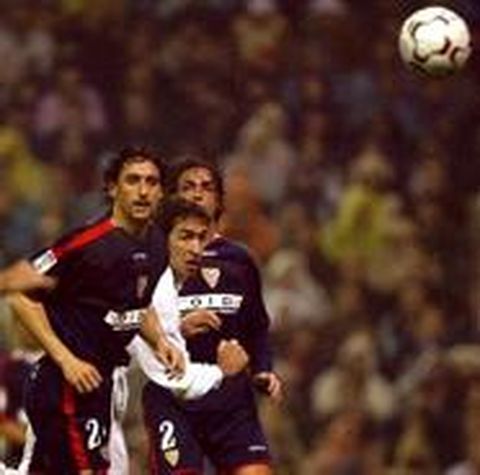 02 ene 2003 . Actualizado a las 06:00 h.El Real Madrid impuso su calidad en una primera parte muy convincente en la que dejó demostrada su superioridad sobre el Sevilla. Sin embargo, tras el descanso dos acciones violentas de dos jugadores hispalenses, en concreto de Pablo Alfaro y Javi Navarro, empañaron un partido que hasta entonces había resultado plácido para los locales. El primero lesionó al vigués Míchel Salgado nada más comenzar la segunda parte e, inmediatamente después, Javi Navarro fue expulsado por otro pisotón a Ronaldo en su pierna maltratada por las lesiones, la derecha. La diferencia de calidad entre uno y otro equipo se puso de manifiesto desde que Raúl abrió el marcador en la primera ocasión que tuvieron los blancos. Hasta entonces, el Sevilla había dado una buena imagen, con toque y peligro por las bandas, pero llegó el gol, que acabó con el equipo andaluz y creció el madrileño. Poco a poco, el equipo de Del Bosque, con mucho equilibrio, se encontró más cómodo en el césped, mientras que el Sevilla sufrió muchísimos problemas para sacar el balón de su campo. Los visitantes tuvieron suerte de no irse con más tantos en contra en el primer tiempo. Sólo el comentado de Raúl y otro más en un sorprendente chut que enganchó Flavio. Tras el descanso y con un jugador menos, el Sevilla se aprovechó de que el Madrid aflojó el ritmo y creó en un cuarto de hora más peligro que en todo el primer tiempo. El gol de Zidane finiquitó una posible reacción.