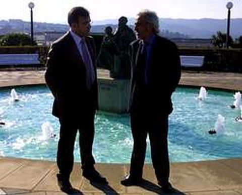 Moncho López y Cholas, los técnicos que dirigirán el destino del baloncesto español en los Juegos Olímpicos de Atenas, compartieron ayer una jornada en A Coruña