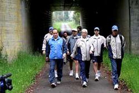 25 may 2004 . Actualizado a las 07:00 h.O el Dépor deja de lograr grandes gestas, o Irureta se controla a la hora de apostar por conseguirlas. Así de dura es la enseñanza que brinda la segunda etapa del Camino inglés, completada por el entrenador blanquiazul con esfuerzo. Cuatro años después de hacer cien kilómetros del Camino francés y dos después de peregrinar al santuario de la Virgen de Pastoriza, Javier Irureta cumplió la promesa realizada antes del encuentro de vuelta de los cuartos de final de la Liga de Campeones, en Riazor ante el Milan. «Si remontamos, voy caminando a Santiago», dijo entonces. Y lo hizo. Aunque todo apunta a que la escena no volverá a repetirse. Entre bromas y veras, el técnico vasco fue dejando recados mientras caminaba (a un ritmo endiablado, marcado por el entrenador de porteros José Sambade y el preparador físico José Ángel Franganillo). «Ahora es cuando me doy cuenta de mis limitaciones; es la última vez que lo hago», espetó. «La próxima vez, apuesto una cena», dijo al recordar cómo surgió la idea del peregrinaje: «Un chaval que casi acaba de llegar al periodismo va y me dice '¿Qué apuestas si pasáis?' Y yo entré fácil al trapo. Lo veía tan jodido que respondo: pues camino hasta Santiago». Para zanjar el tema, tras la siguiente apreciación de Javier Irureta: «Paco, hemos nacido un poco antes de tiempo; hubiéramos ganado más dinero y estaríamos ahora en Canarias en una colchoneta en lugar de haciendo el Camino», su ayudante Paco Melo pone la puntilla: «Pero Jabo, si te pedirían entonces que subieses al Teide y lo harías. Para la próxima vez, reza cuatro padrenuestros antes de hacer una promesa». El trazado inglés (que por su poco tránsito bien pudiera ser rebautizado como escondite inglés) permitió a Irureta caminar sin la presencia de curiosos ni la compañía de otros peregrinos, lo que favoreció las conversaciones con su alter ego y ayudante en el banquillo, Paco Melo. Los temas: fútbol de pasado y presente, las circunstancias que aderezaron la primera etapa del Camino, la boda de Felipe y Letizia y, por supuesto, ciclismo. El deporte del pedal protagoniza siempre el debate estrella en el cuerpo técnico. Por eso, Melo respondió con un irónico «podíamos charlar un poco de ciclismo, que nunca lo hacemos» a la sugerencia de Irureta: «Paco, cuenta historias de cuando metías goles». Al final se acabó hablando hasta de las ausencias en la boda real. Cinco horas, una parada A las nueve de la mañana arrancaba desde Deixebre la expedición blanquiazul. Por delante, 27 kilómetros. En las piernas, 33 más. Éstos son los que le pasaron factura al utillero Suso Méndez a los cincuenta minutos de marcha. La moral del grupo estaba tocada en ese momento y se buscaban con ansiedad los mojones kilométricos. El bloque se rompió con la baja de Suso. Sambade y Franganillo se rezagaron para acompañar al utillero. Pero a las once y media, el grupo perseguidor conectaba con el pelotón y comenzaba a tirar. El ritmo impuesto por los dos licenciados en INEF fue de traca. Tanto, que se pasaron en un cruce de caminos ante las bromas de Irureta («No estamos para regalar metros»). Quizás fue uno de los factores que terminaron por convencer al vasco de que la experiencia tiene pocos visos de repetirse. «Parecemos ciclistas holandeses, no se nos dan nada bien las cuestas», apreció Irureta antes de quejarse levemente por las prisas del resto de la expedición y de pedir a los coches que «parasen en lugar de tanto saludar». Una breve parada en la mitad del recorrido fue el único descanso del grupo hasta la llegada a las dos de la tarde. Sólo en Sigüeiro y Santiago aparecieron los cazaautógrafos (uno de los cuales ofreció embutidos al míster) y no faltó Juan Ángel Barros Botana, que únicamente asomó cerca del Obradoiro para salir en la foto, disfrazado de peregrino.