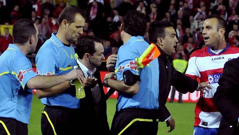 Un carrusel de incidentes que no terminó ahí. Desde el Granada atacaron al árbitro por ser aragonés, lo que podría favorecer al Zaragoza, implicado también en la lucha por evitar el descenso. «No es que sea un arbitro aragonés, es que es de Zaragoza y nos ha perjudicado. No debería haber pitado este partido. Ya se puede ir a Zaragoza tranquilo y que le hagan un monumento», dijo el presidente del Granada Enrique Pina, quien antes del encuentro ya había acusado al Zaragoza de adulterar la competición por sus deudas. «Es una vergüenza que un aragonés pite en Granada ahora»,decía Iñigo López aún sobre el campo.
