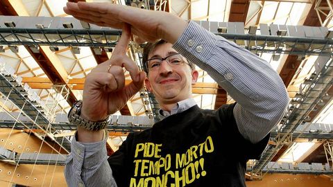 -¿Y por qué es tan reacio a pedir tiempos muertos? La gente de #rosmadoiro ha hecho camisetas que dicen «Pide tempo morto, Moncho!!!»...