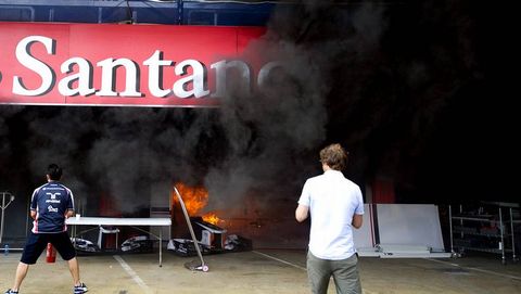 Fue una carrera que dio para mucho, y más para el piloto de Maracay. La imagen de Maldonado cargando a la espalda a su primo para alejarlo del incendio que se declaró en el box de Williams, lo convirtió por segunda vez en el héroe del día. Aunque esta vez fuera de la pista. La explosión en el garaje de la escudería inglesa pudo tener fatales consecuencias. Se saldó con 32 heridos, uno de ellos de carácter grave con quemaduras en el 15% del cuerpo.