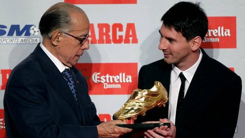 30 oct 2012 . Actualizado a las 03:15 h.El futbolista argentino Leo Messi, delantero del Barcelona, ha sido galardonado hoy con la Bota de Oro por los 50 tantos que anotó en la pasada liga española, convirtiéndose en el máximo goleador de todas las ligas europeas.