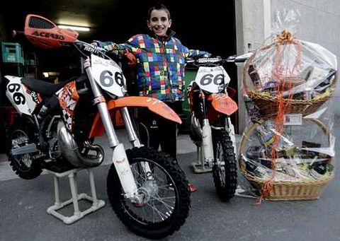 Jose Canosa, subcampeón gallego alevín de motocrós, sortea una cesta de Navidad para costearse la temporada