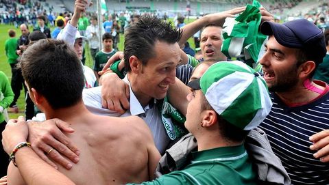 03 jun 2013 . Actualizado a las 12:15 h.El Racing retorna al fútbol nacional tras convertirse en una auténtica apisonadora en Tercera División. Los ferrolanos, con un fútbol propio de otra categoría, acabaron la liga batiendo un sinfín de récords y sumando 97 puntos, cifras que tan solo están al alcance de dos clubes galácticos como el Barcelona de Messi o el Real Madrid de José Mourinho, Cristiano Ronaldo y compañía. Tras pasearse en la Liga, el Racing no pudo noquear a un correoso Laudio, campeón del grupo vasco, en el play off de ascenso, aunque le ganó a los puntos en dos partidos muy sufridos, 1-1 fuera y 1-0 en casa. El juego del equipo ilusionó a Ferrol y más de siete mil personas se congregaron el pasado sábado en A Malata para vibrar con su equipo, una cifra insólita en Tercera División. Fue un momento dulce para una ciudad maltrataba y aquejada de muchos males por la crisis del sector naval. El presidente del club, Isidro Silveira, incluso comentó al final del choque: «Cambiaría el ascenso por un barco en la grada de Navantia».