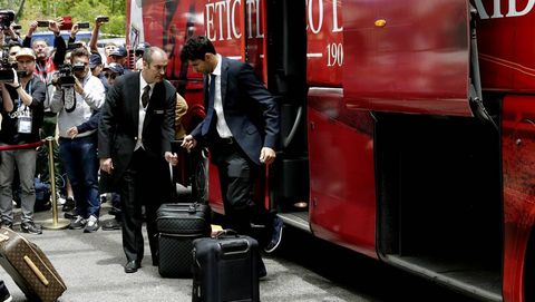 Costa, que es duda para la final por problemas físicos, desembarcó del autobús sonriente, mientras que sus colegas el turco Arda Turan (también en duda) y el español David Villa enfilaron al hotel concentrados con auriculares.