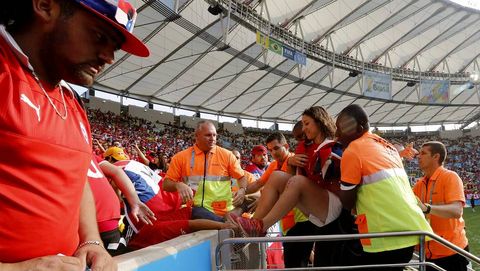 «Traté de cerrar la puerta, pero no me dio tiempo. Eran muchos», dijo uno de los agentes de seguridad privada, que intentó en vano cerrar una puerta metálica situada a una decena de metros del lugar por el que los hinchas chilenos rompieron el perímetro de seguridad. La policía no es la responsable de la seguridad del estadio, sino que es competencia de los agentes privados contratados por el comité organizador. Danielle Figueiredo, una voluntaria brasileña en el centro de prensa, reveló que el incidente le dio «mucho miedo». «Fue una invasión de hinchas chilenos que no tenían tickets. Querían entrar al centro de prensa y ver el partido gratis. Rompieron la puerta... creo que eran unos cien», comentó.