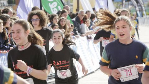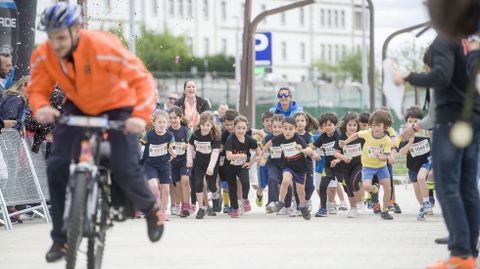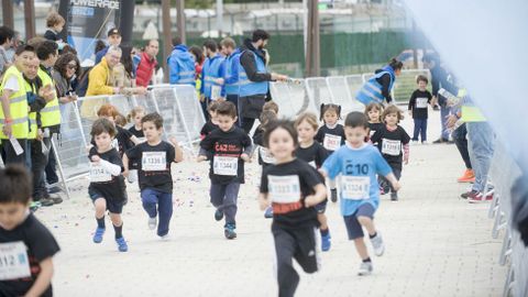 Con la Exporrunning a pleno funcionamiento, la carrera solidaria Breakfast Run abrió boca desde las nueve y media de la mañana. La prueba alcanzó también parte del Paseo Marítimo. Después, fue el turno de las carreras de categorías inferiores vinculadas a la Maratón Atlántica que ocupará la mañana deportiva dominical.