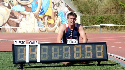 «Llevaba tiempo pensando que podía batir el récord, se lo había comentado a mis amigos, pero nunca salía porque había viento en contra o no se daba la carrera perfecta», comenta el protagonista. Tampoco tenía pinta que fuera a registrarse en las pistas universitarias de Ourense en un día infernal por el calor. «El tartán ardía, pensé que iba a ser una mala tarde y que no iba a hacer la marca, solo tenía intención de competir, incluso hacia la parte final de la carrera me noté con un punto de cansancio, pero al cruzar la meta vi que todo el mundo aplaudía, miré el cronómetro y no me lo creía, incluso al principio pensé que sería ventoso y que no valdría». Pero el viento era legal y su nuevo récord real.