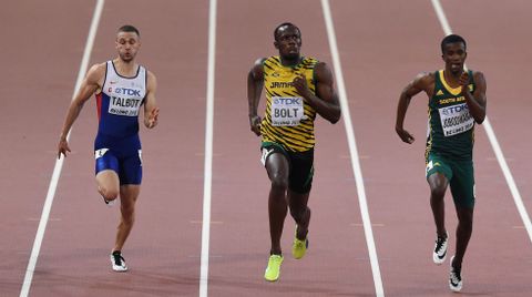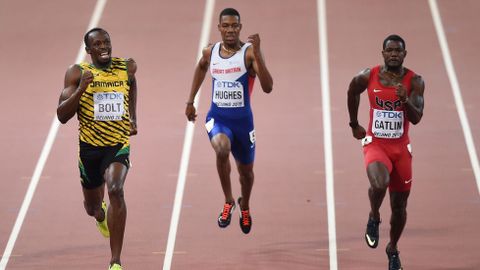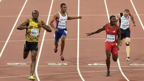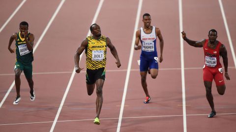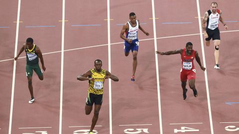Por detrás de su tronco erguido y henchido después de firmar otro registro para la posteridad, llegó un Justin Gatlin agónico, que inclinó su tronco para asegurar la plata, la única medalla que estaba ayer en juego para los terrenales. El americano indultado confirmó su progresión en el doble hectómetro, pero la mejora fundamentada en el parón de la sanción le alcanza para sostenerle la mirada a Usain durante 90 metros a cambio de gastar toda su energía y llegar crispado a la meta.