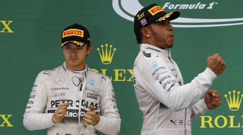 Un sólido campeón. El inglés ganó 10 de las 19 carreras, y su compañero Nico Rosberg se hizo con otras seis, por lo que solo en tres pruebas Mercedes quedó fuera delo más alto del podio. Hamilton se proclamó campeón tras ganar el Gran Premio de Estados Unidos, donde tuvo sus fricciones con Rosberg en una abrupta salida. Su momento más crítico de la temporada lo vivió en Mónaco, donde una decisión de estrategia de su equipo le hizo perder una carrera en la que había sido el claro dominador hasta la entrada de un coche de seguridad.