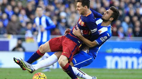 Enredado en un partido sin fútbol, una trampa letal para el preciosismo de los azulgrana que sufrieron frente a un aguerrido Espanyol, que dejó sus intenciones de jugar el balón en el vestuario y desde el primer minuto del partido se dedicó a destruir. La declaración de intenciones de Constantin Galca se quedó a medias. Si desde la pizarra y la alineación prometía disputar la posesión del balón a los azulgrana, en el fondo los blanquiazules jugaron a complicarle la vida al rival, más que a intentar acercarse a la meta de Bravo.