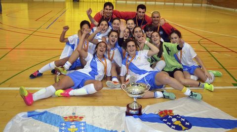 La capitana del combinado galaico, María, recogió el trofeo de manos de los alcaldes de Parla y Humanes, lugares donde se celebró el torneo que acredita a Galicia como el equipo campeón de España sub-17.