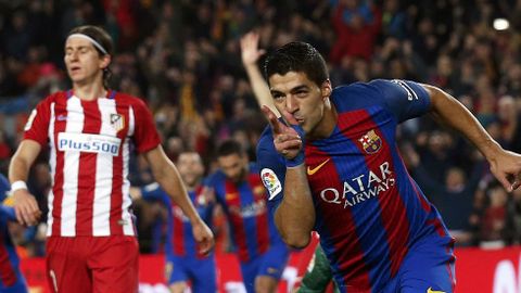 08 feb 2017 . Actualizado a las 08:26 h.El Barcelona ha sufrido para clasificarse para la final de la Copa del Rey por cuarta vez consecutiva después del empate con el que se cerró la vuelta ante el Atlético de Madrid (1-1), en un partido que lo tuvo todo, con tres expulsiones, un penalti fallado por los colchoneros (perjudicados por un gol mal anulado a Griezmann) y emoción hasta el final. Los barcelonistas no podrán contar para la final con Luis Suárez, autor del gol, ni tampoco con Sergi Roberto. El partido fue intenso. Dominó el Atlético de Madrid en el primer tiempo, pero marcó el Barça en la recta final. En la segunda mitad, los de Simeone pusieron en aprietos al Barça en la recta final y marcaron en el 83. Al final, los azulgranas acabaron jugando con nueve y achicando agua frente a un Atlético que buscó la prórroga.