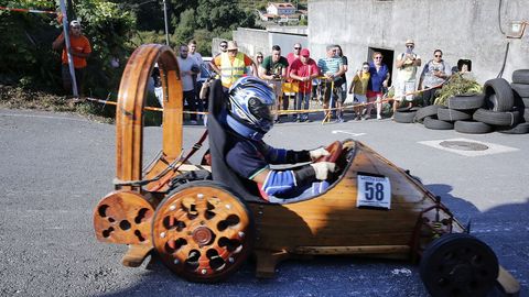 La imaginación se hizo fuerte este fin de semana en Marcón. La Federación de Deportes de Inercia (FEDI) organizó por segunda vez el Campeoanto de España de esta disciplina en la Baixada a Pintos. Durante toda la mañana, las mejores carrilanas desfilaron por este tramo puntuable para la Copa Fedi y la Copa Galicia. Cada participante llevó su creatividad al límite para hacer que su vehiculo fuese el más rápido y atractivo. Un total de 60 carrilanas recorrieron ayer Marcón en las mangas oficiales. foto emilio moldes