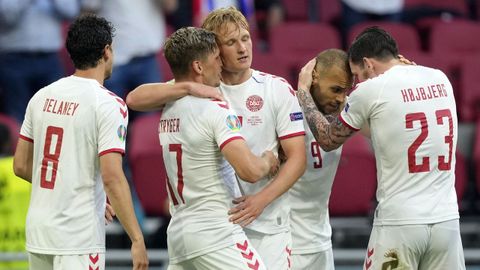 Un doblete de Dolberg y dos goles postreros de Maehle y Braithwaite premian la superioridad danesa frente a un rival que solo inquietó al inicio del partido