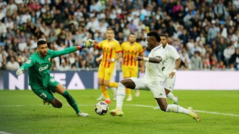 El fútbol fue clemente con los displicentes minutos del Real Madrid, pero cruel con la atractiva propuesta del Girona. Porque en el siguiente ataque de los blancos Valverde tiró de ardor para ganar una pugna en el área y servir al segundo palo, donde Vinicius embocó a placer. Pudo sentenciar el Real Madrid de inmediato en un remate a quemarropa de Asensio que repelió Gazzaniga, antes de que Míchel quemase sus últimas naves con un triple cambio que llevó al césped a Toni Villa, Reinier y Stuani.