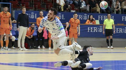 A falta de cuatro para el final se formaba una reyerta entre ambos banquillos y estallaba en silbidos la grada tras una acción en la que el Burela prosiguió el juego con uno de los suyos tendido sobre el parqué. Desde megafonía advertían de la posibilidad de suspender el encuentro en el caso de no cejar las hostilidades de un derbi a la antigua usanza. Tres por delante y, tras el tenso parón, acometían ambos equipos con energías renovadas. Un error de los de Gallego en defensa supuso la victoria, sobre la bocina, de un Burela que no se conformaba con el empate y, asumiendo riesgos haciendo uso del portero jugador, celebró con rabia la ventaja de cinco puntos sobre un rival directo, que acuñó Lucho.