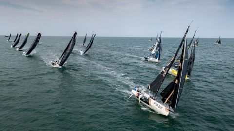 Los 34 regatistas en solitario que participan en la prueba partieron este domingo desde la bahía del Sena y llegarán a la ciudad olívica el 18 de septiembre