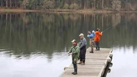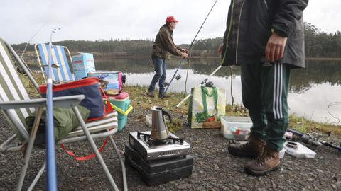 En Ferrolterra, el embalse de As Forcadas, en la localidad de Valdoviño, congregó desde bien temprano a pescadores de toda la comarca que acudieron a su cita pertrechados con ropa de abrigo, café y un buen abanico de anécdotas para aderezar la jornada inaugural. Allí se encontraba un habitual de la pesca en la comarca como Eloy Saavedra, vicepresidente de la Sociedad de Pesca Deportiva Río Xuvia (Narón): «O día non está axudando moito, con moi pouquiño vento, e no encoro iso nunca é bó. Todo o grupo dos que viñemos non collemos ningunha troita. Houbo algunha picada, pero non foi un día moi movido», valoró. Sí hubo, según el propio Saavedra apreció, más suerte en la otra margen del embalse donde la captura de dos ejemplares de un compañero corrió como la pólvora.