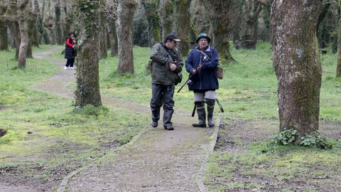 Miguel Sande, de la Sociedad Deportiva Río Ulla (A Estrada): «Nós fomos a ninfa. Vimos pouca troita e pequena. Houbo dúas ou tres picadas, pero eran troitas que non daban a medida», dice. Sande estrenó la temporada en el río Rubín, un cauce en el que las subidas y las bajadas del caudal son rápidas, por lo que este domingo el río no iba en absoluto alto, aunque sí llevaba fuerza. «Agora pola tarde vin poucos pescadores no río. Ou foron moi cedo ou, como as troitas non picaban, marcharon. Vou ter que empezar a facerlle caso aos vellos, que din que con aire norte novo non pican», comenta.